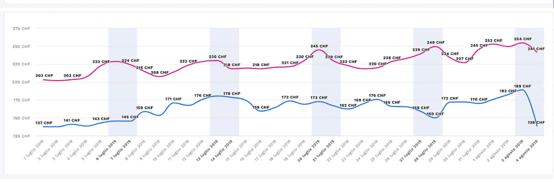 Historical reports with data for the previous year, multiple users and multiple customized Competitive sets,